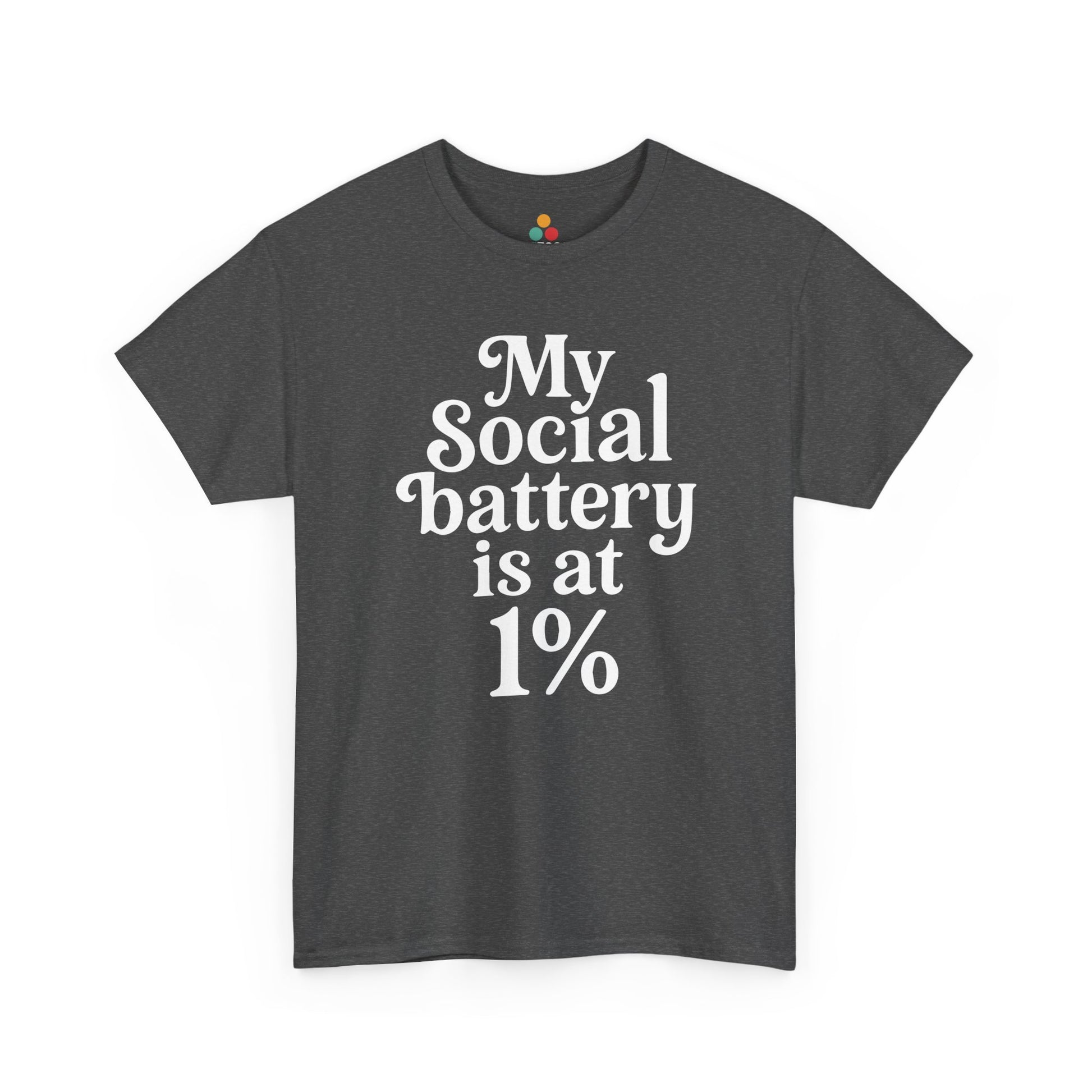 My Social Battery Is At 1% Shirt — Funny Introvert and Socially Drained Humor Tee