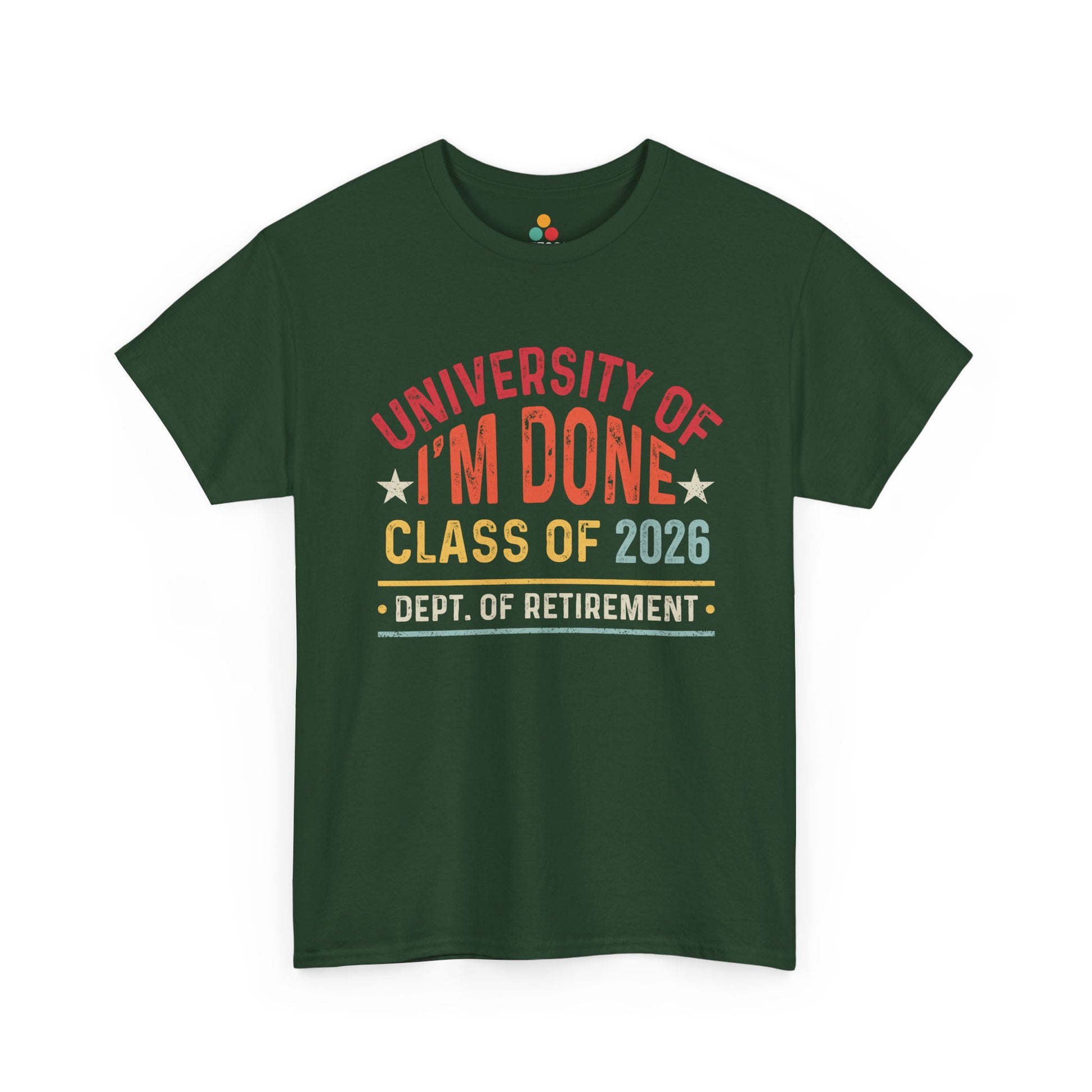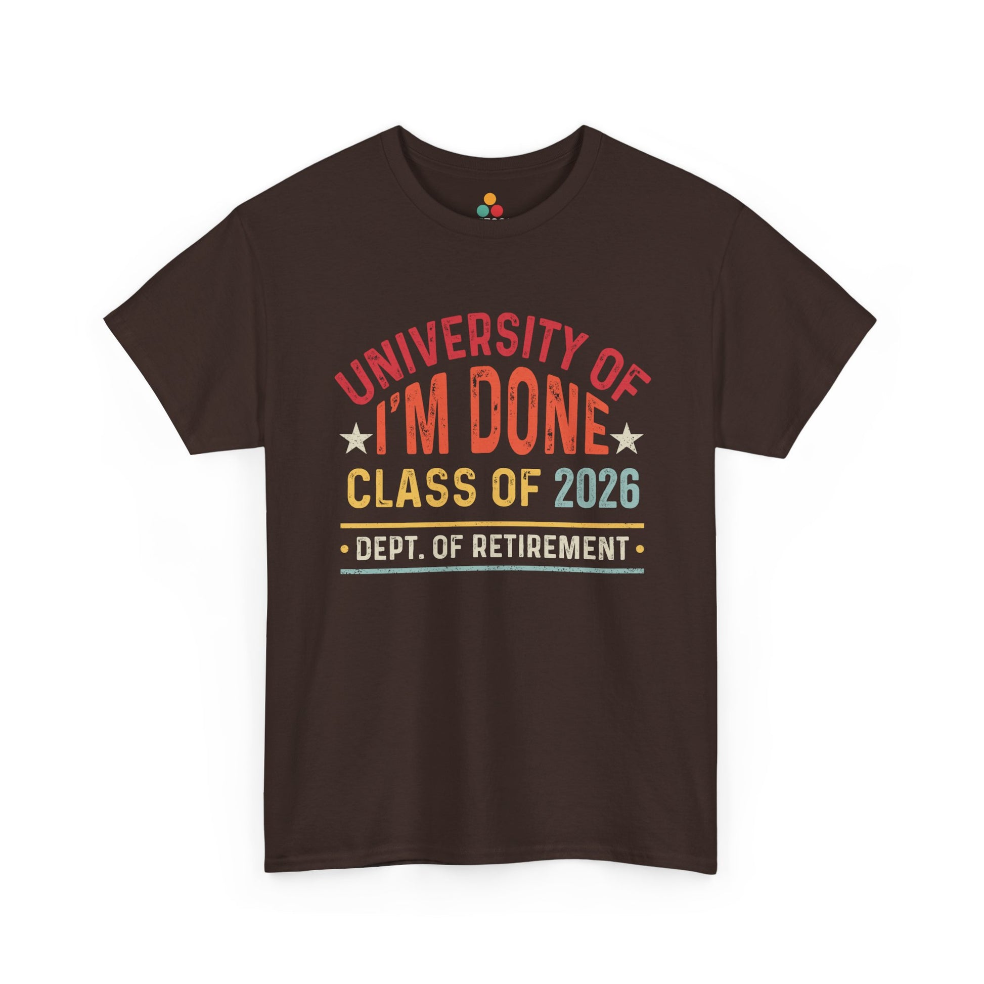 University of I’m Done Class of 2026 Retirement Shirt — Vintage Retro Dept. of Retirement Tee